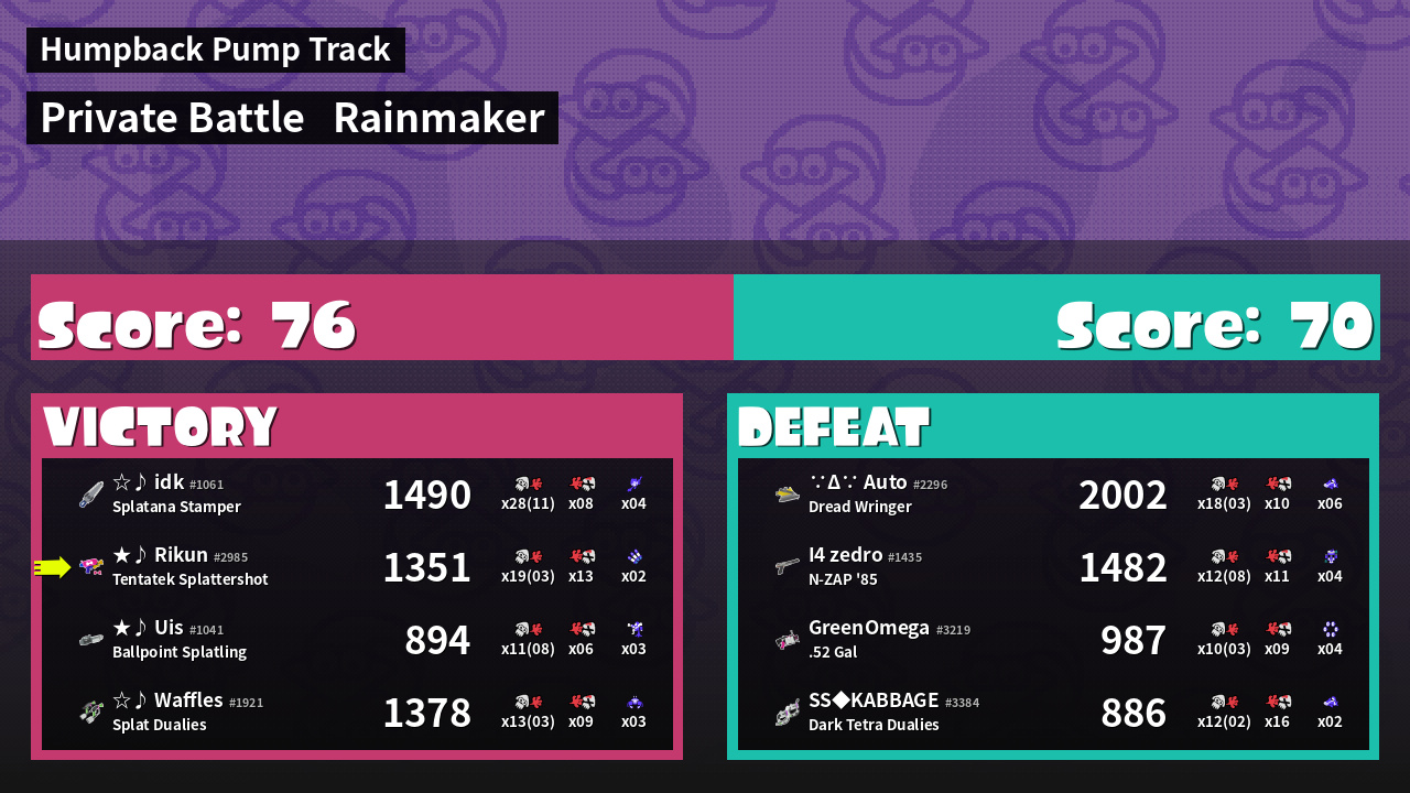 Name | Weapon | Inked | ![]() |