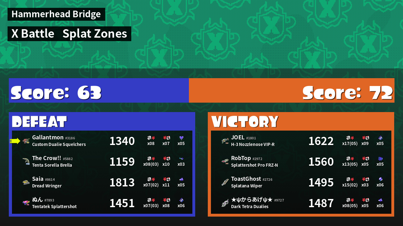 | Medals | #1 Overall Splatter #1 Splat Zone Inker #1 Splat Zone Guard | ||