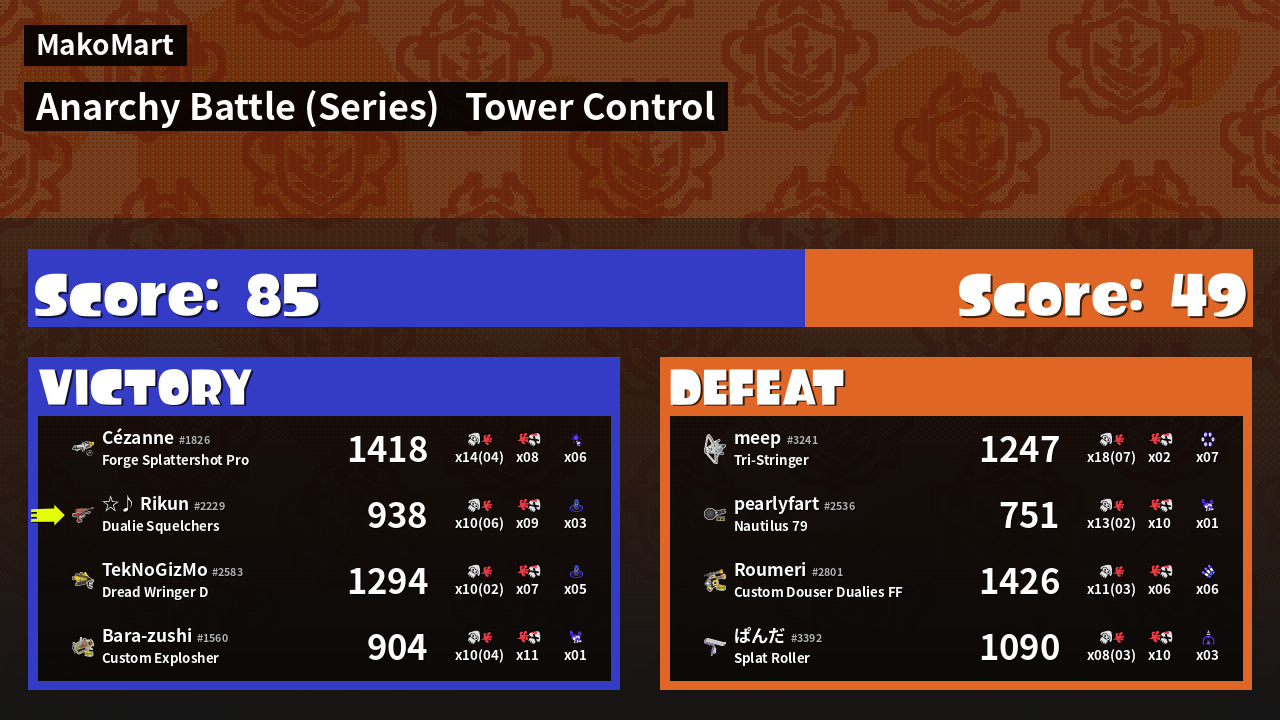 | Mode | Tower Control - Anarchy Battle (Series) | ||