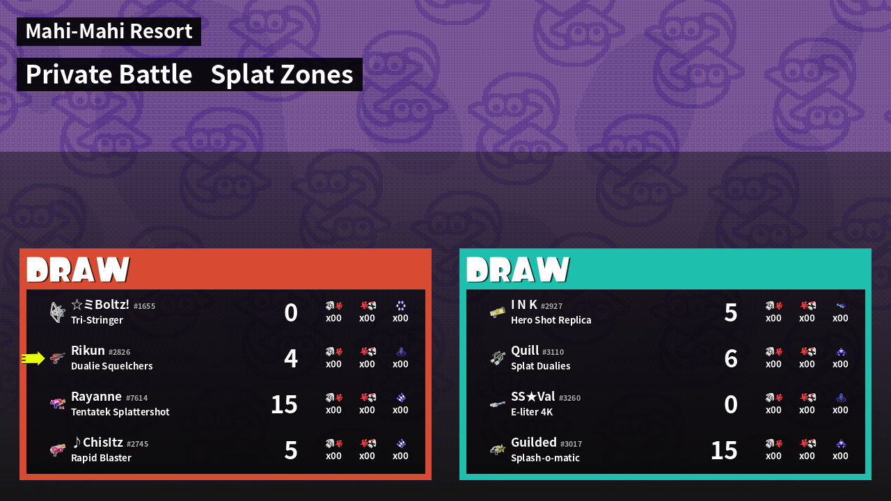 Kills / Deaths | 0 + 0 / 0 = Kill Ratio: 1.00 | ||