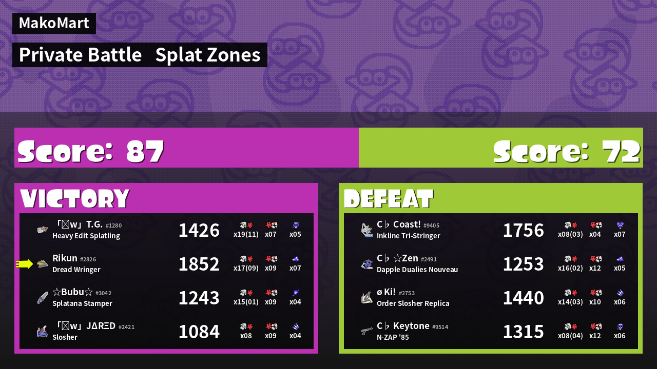 Kills / Deaths | 8 + 9 / 9 < Kill Ratio: 0.89 | ||