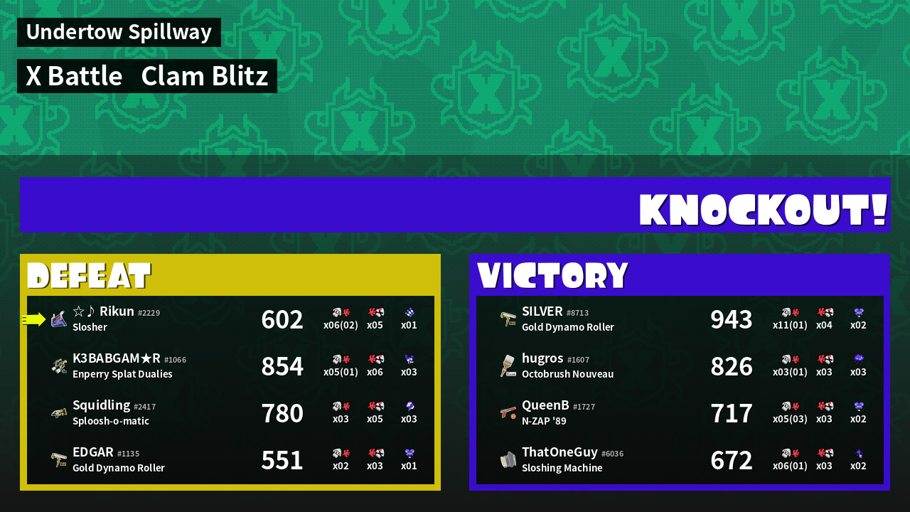 | Mode | Clam Blitz - X Battle | ||