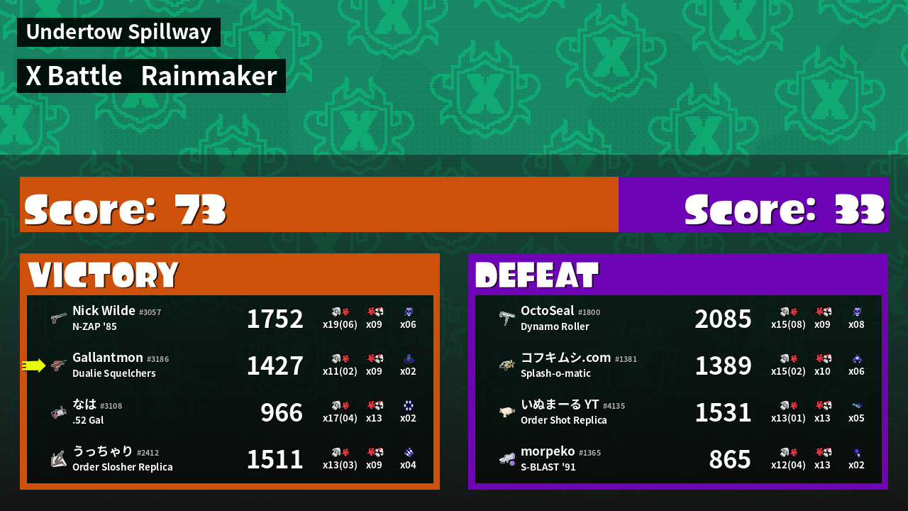 | Mode | Rainmaker - X Battle | ||