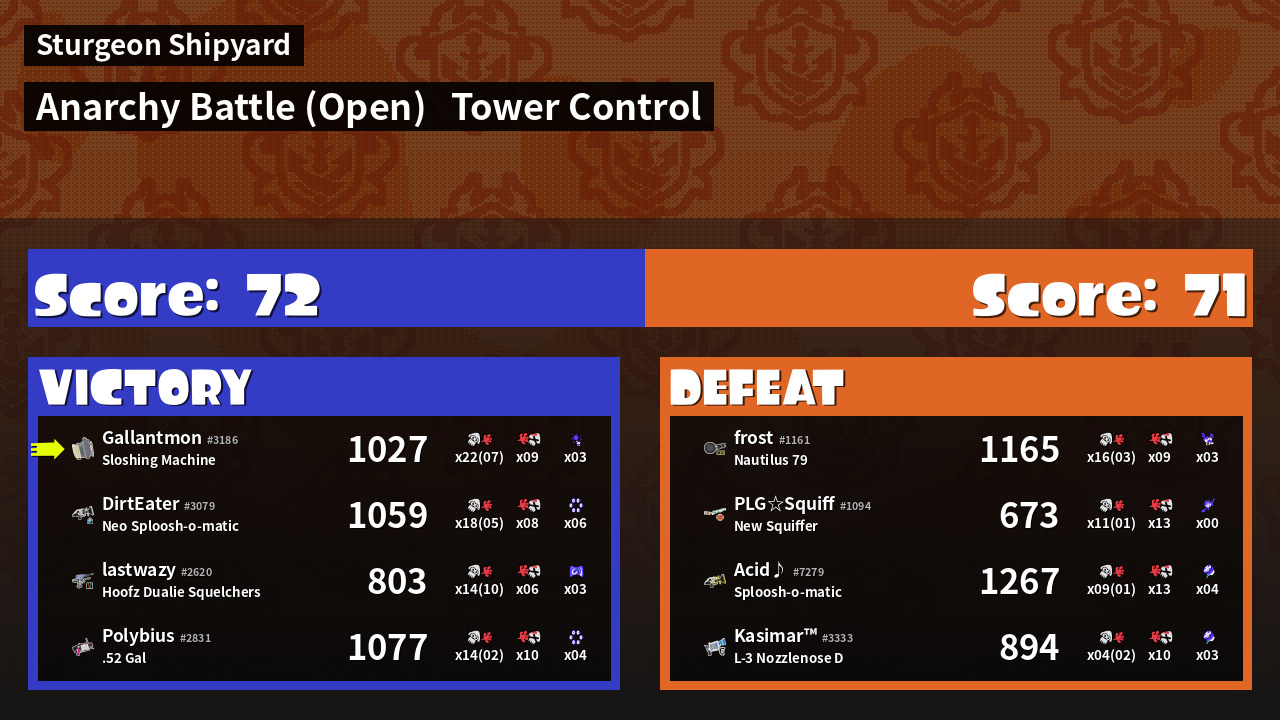 | Medals | #1 Overall Splatter #1 Score Booster #1 Popular Target | ||