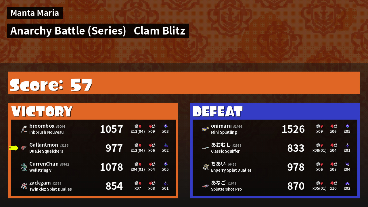 | Mode | Clam Blitz - Anarchy Battle (Series) | ||