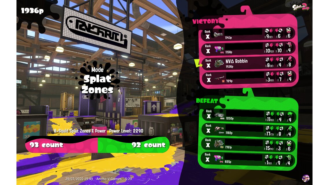 | Mode | Splat Zones - Ranked Battle | |||||||||||||||||||||||||||||||||||||||||||