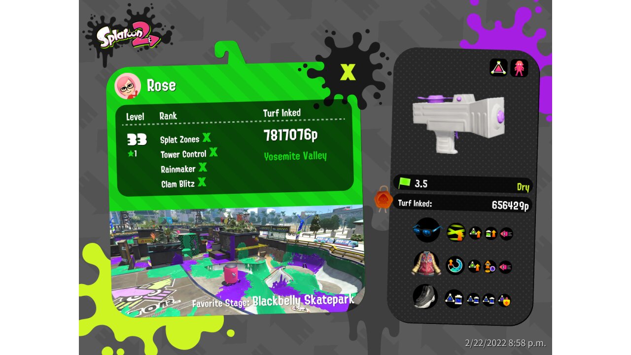 | SplatNet Battle # | 8,120 | |||||||||||||||||||||||||||||||||||||||||||