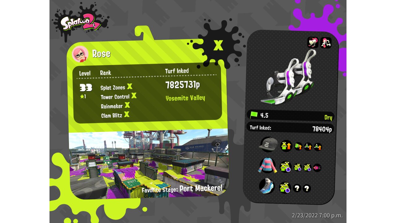 | SplatNet Battle # | 8,126 | ||||||||||||||||||||||||||||||||||