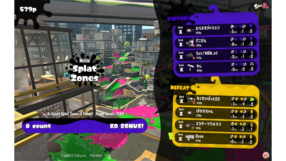 | Mode | Splat Zones - Ranked Battle | |||||||||||||||||||||||||||||||||||||||||||