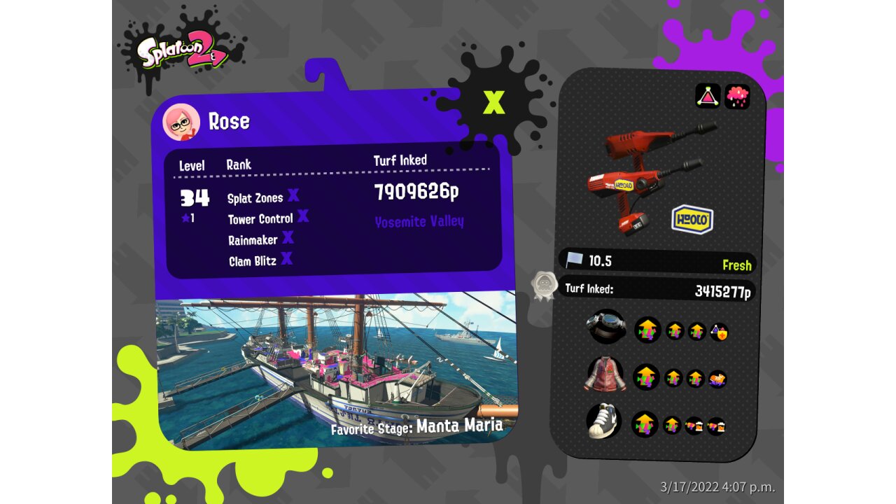 | Name | Weapon | Level | Rank | Inked | k+a/sp | k/d |