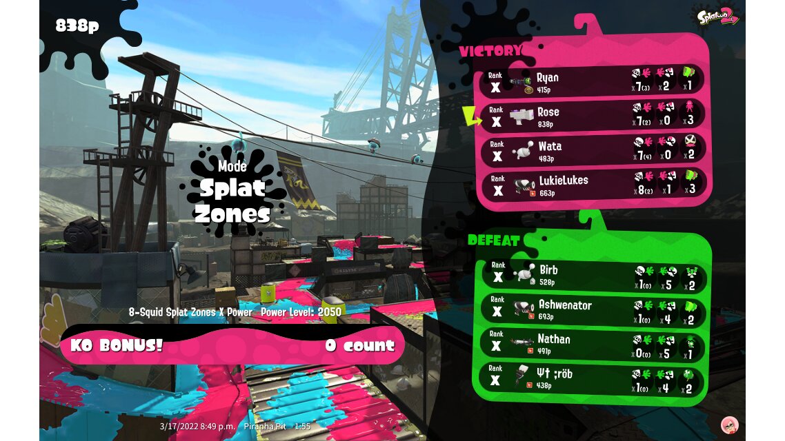 | Mode | Splat Zones - Ranked Battle | |||||||||||||||||||||||||||||||||||||||||||