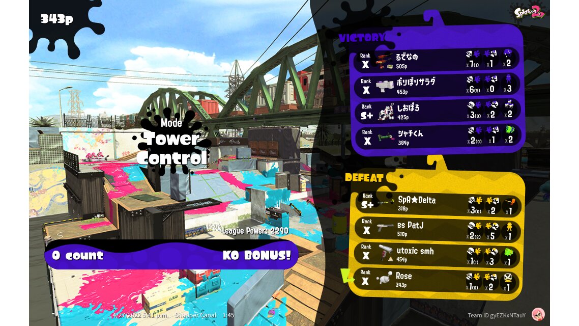 | Mode | Tower Control - League Battle (Quad) | ||||||||||||||||||||||||||||||||||||||||
