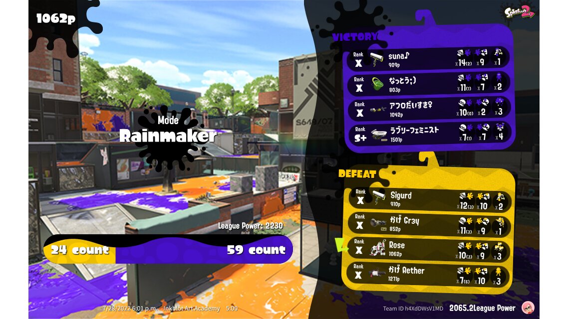| Mode | Rainmaker - League Battle (Twin) | |||||||||||||||||||||||||||||||||||||