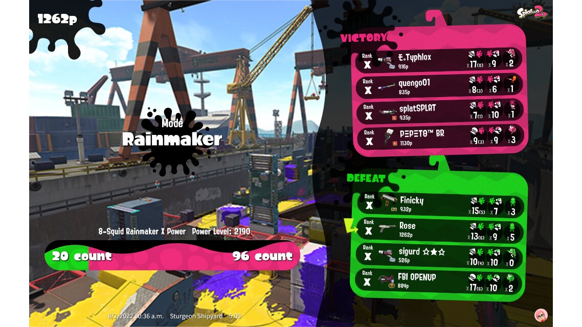 | SplatNet Battle # | 8,958 | ||||||||||||||||||||||||||||||||||||||||||||||