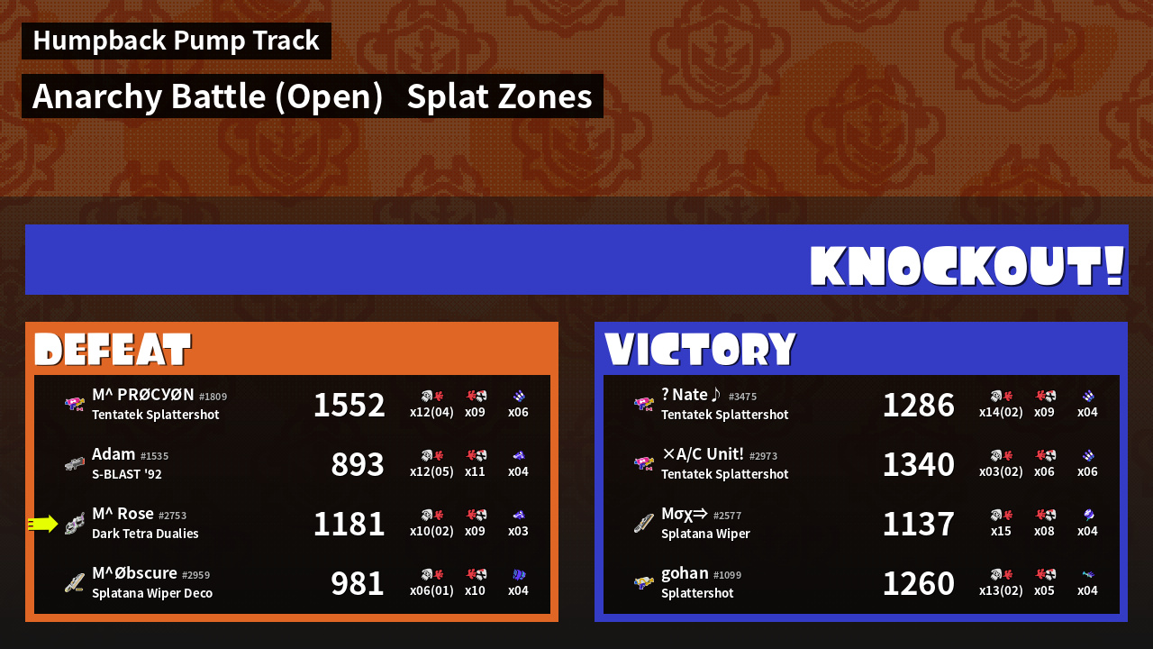 | Mode | Splat Zones - Anarchy Battle (Open) | ||