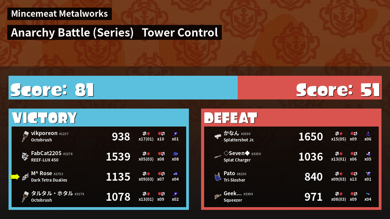 | Mode | Tower Control - Anarchy Battle (Series) | ||