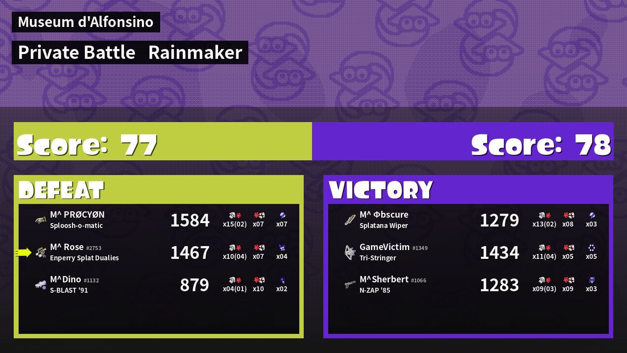 | Medals | #1 Popular Target #1 Super Jump Spot #1 Splat Assister | ||