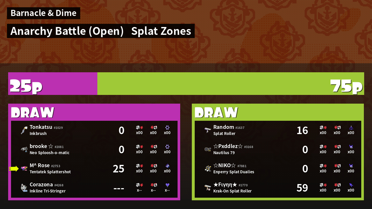 | Mode | Splat Zones - Anarchy Battle (Open) | ||