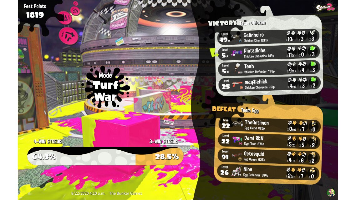 | Mode | Turf War - Splatfest (Team) | ||||||||||||||||||||||||||||||||||