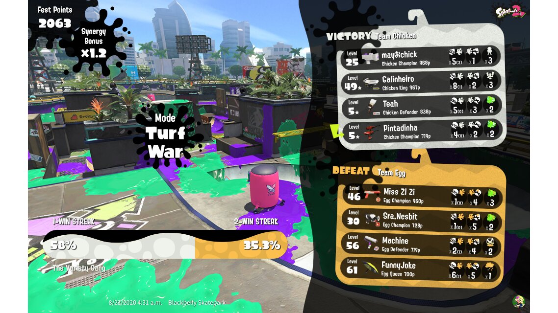 | Mode | Turf War - Splatfest (Team) | |||||||||||||||||||||||||||||||