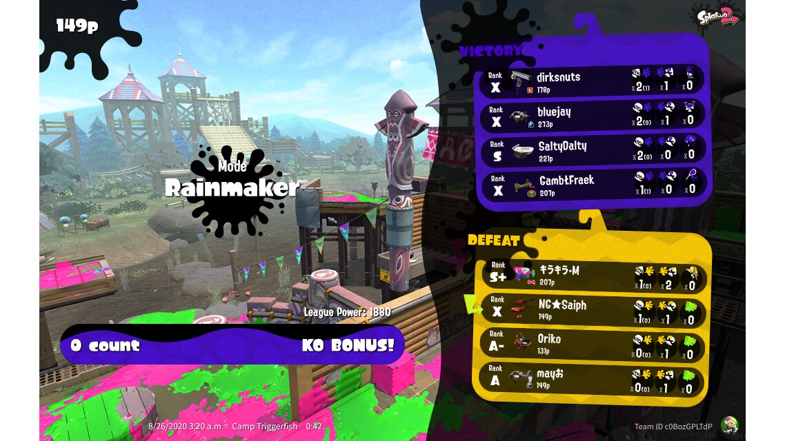 | Mode | Rainmaker - League Battle (Twin) | ||||||||||||||||