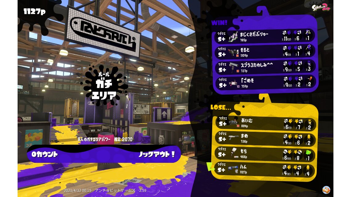 | Mode | Splat Zones - Ranked Battle | ||||||||||||||||||||||||||||||||||