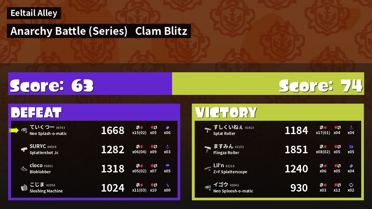 Results of ていくつー's Battle