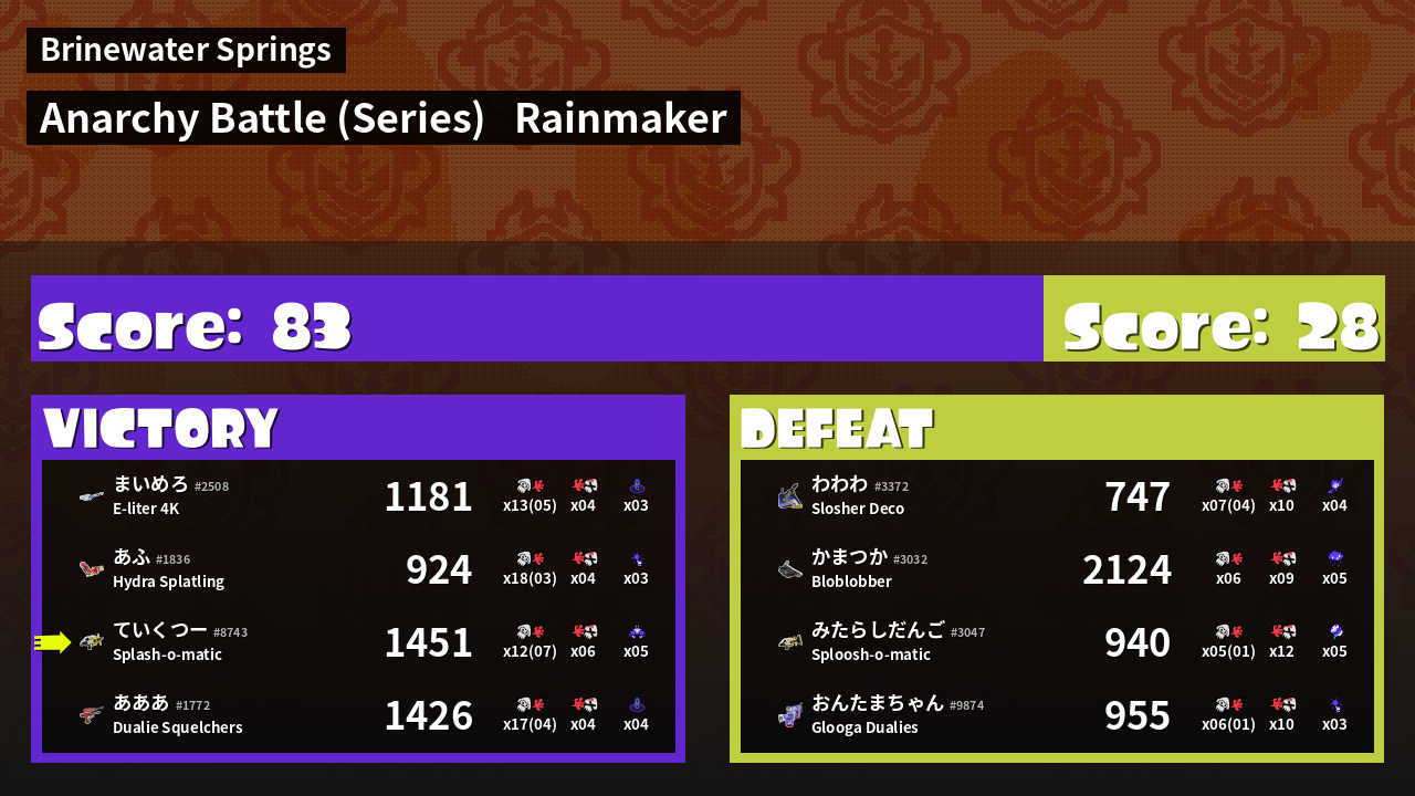Results of ていくつー's Battle