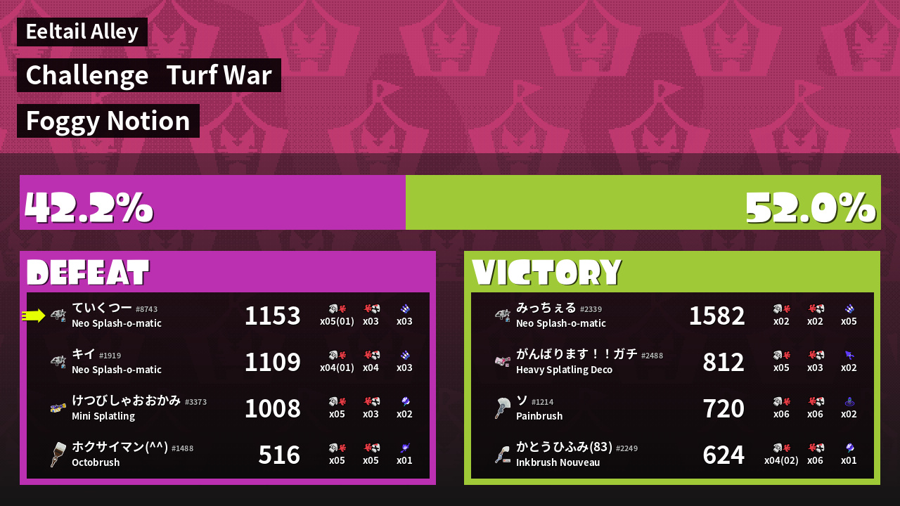 | Mode | Turf War - Challenge | ||