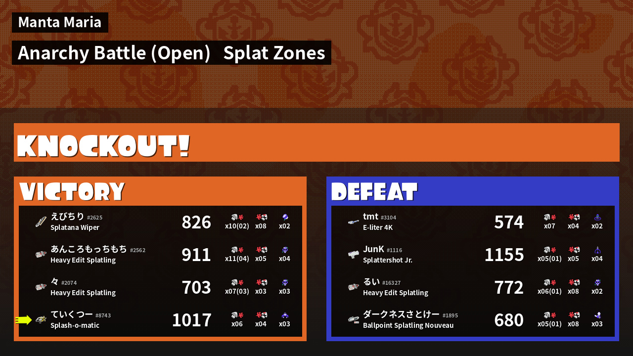 Results of ていくつー's Battle