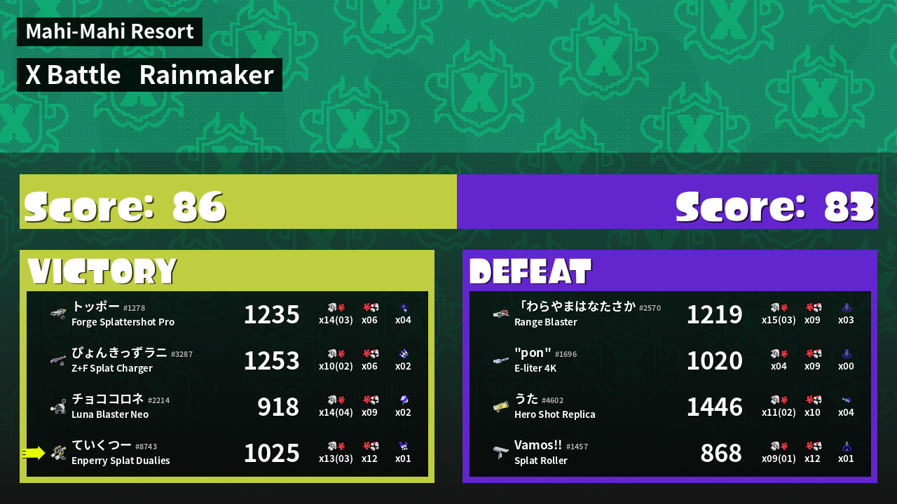 Kills / Deaths | 10 + 3 / 12 < Kill Ratio: 0.83 | ||