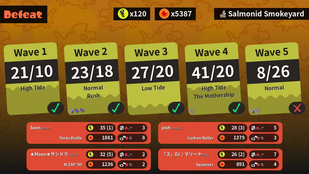 | Special | Killer Wail 5.1 (2) | Kraken Royale (2) | Inkjet (2) | Triple Inkstrike (0) |