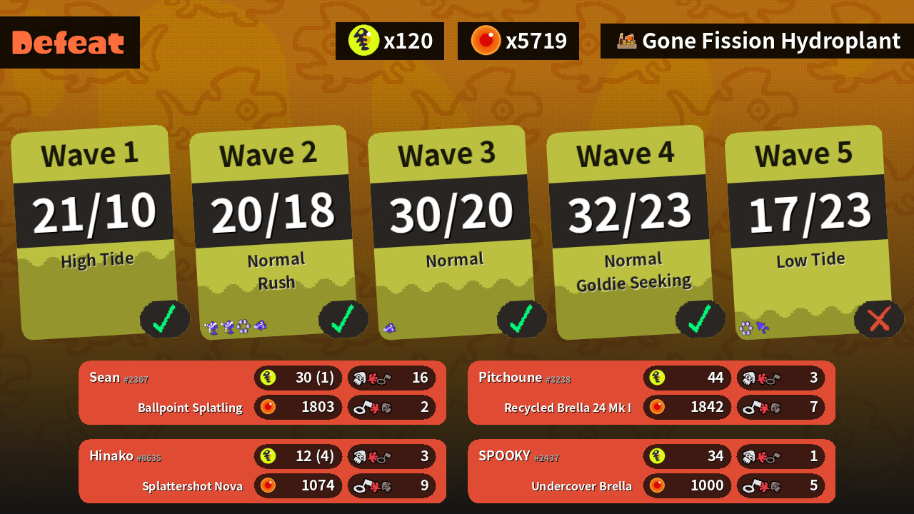 | Weapons | Ballpoint Splatling | Recycled Brella 24 Mk I | Undercover Brella | Splattershot Nova |