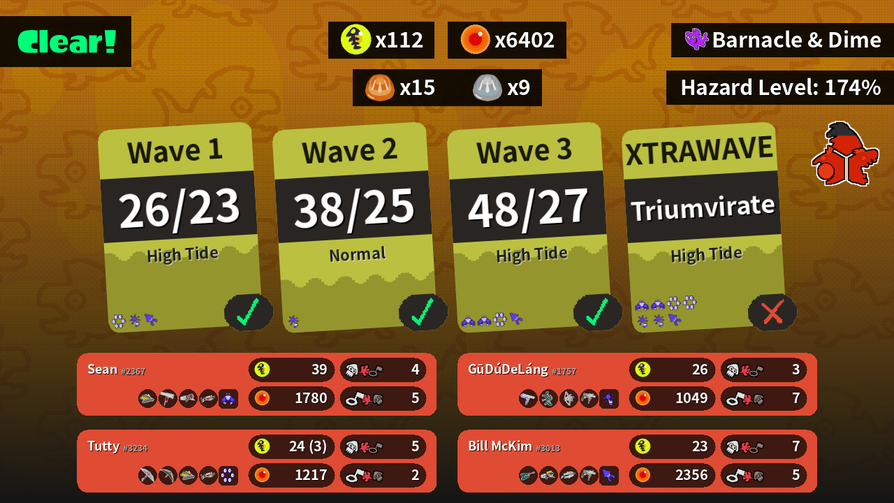 | Weapons | Dread Wringer Flingza Roller Blaster Grizzco Charger | Big Swig Roller Wellstring V Tri-Stringer Grizzco Roller | Splat Brella Tenta Brella Dread Wringer Grizzco Charger | Jet Squelcher Grizzco Blaster Grizzco Brella Grizzco Roller |