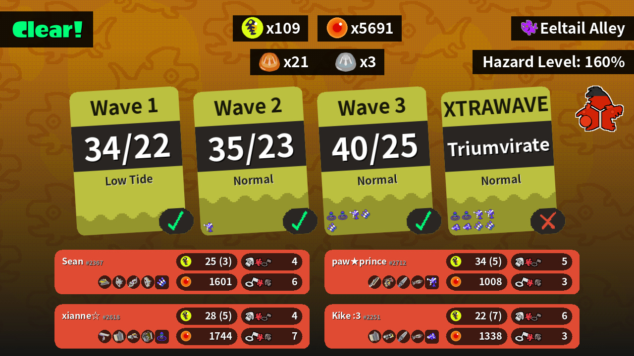 | Weapons | Dread Wringer Tri-Stringer Dark Tetra Dualies Grizzco Stringer | Splatana Wiper Douser Dualies FF Splatana Stamper Grizzco Charger | Splat Roller Sloshing Machine Grizzco Blaster Grizzco Slosher | Sloshing Machine Splattershot Nova Splatana Stamper Grizzco Charger |