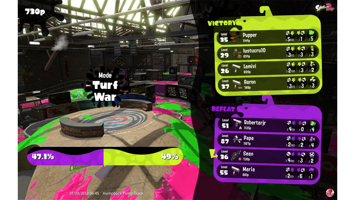| Mode | Turf War - Regular Battle | |||||||||||||||||||||||||||||||||||||