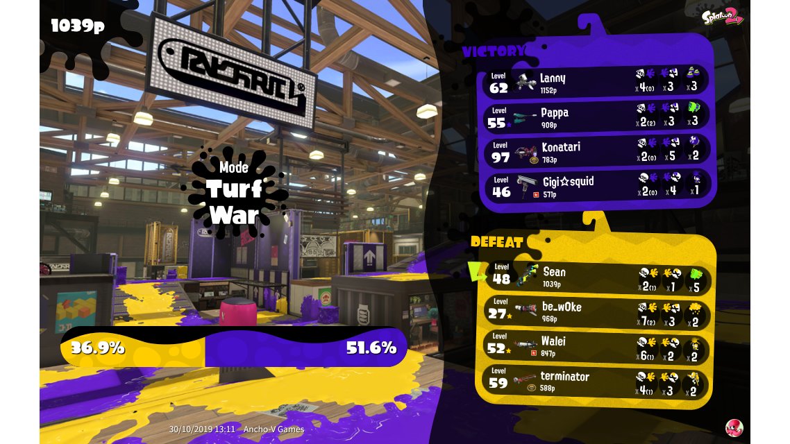 | Mode | Turf War - Regular Battle | ||||||||||||||||||||||||||||||||||