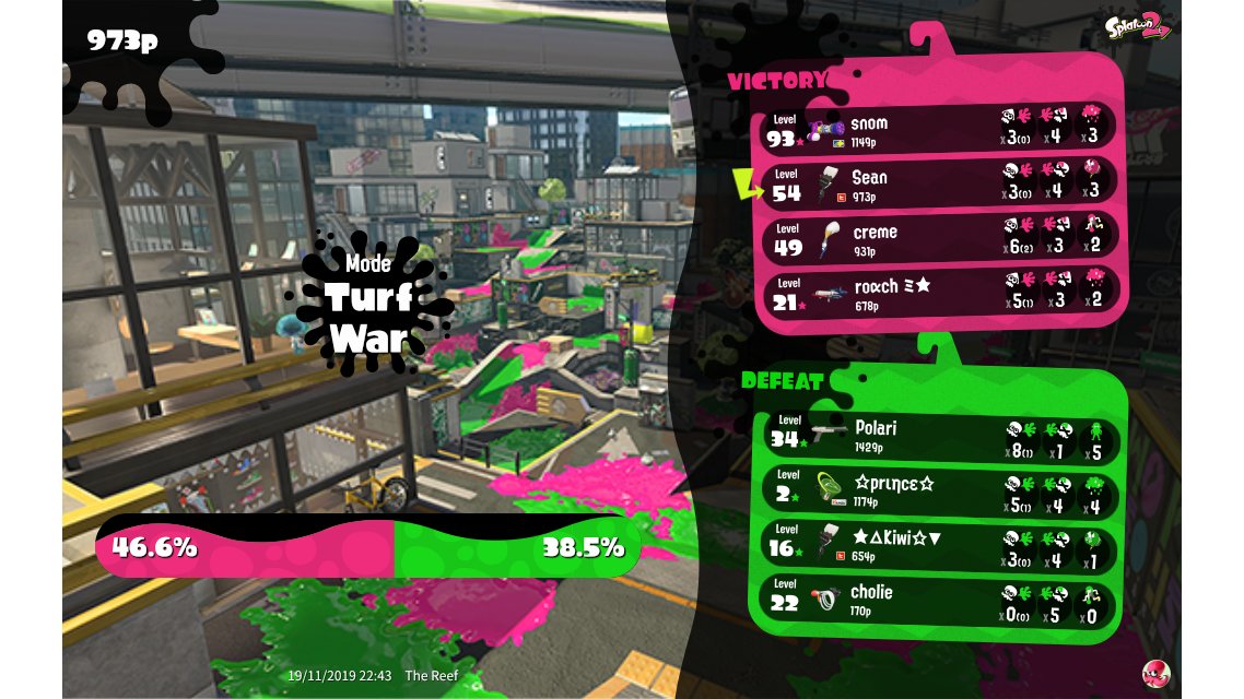 | Mode | Turf War - Private Battle | ||||||||||||||||||||||||||||||||||