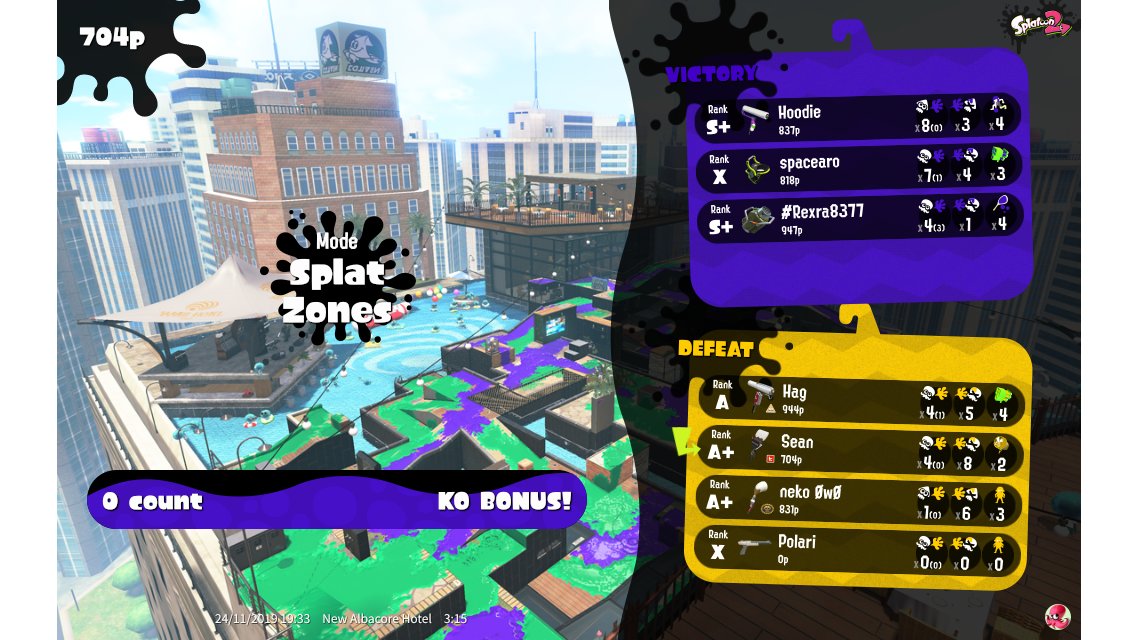 | Mode | Splat Zones - Private Battle | |||||||||||||||||||||||||||||||||||||