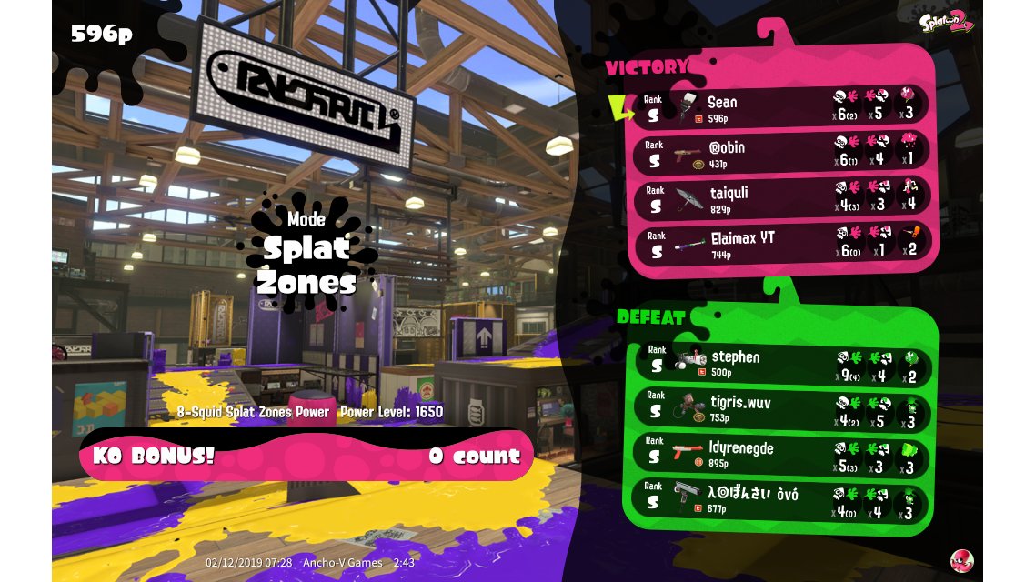 | Mode | Splat Zones - Ranked Battle | ||||||||||||||||||||||||||||||||||