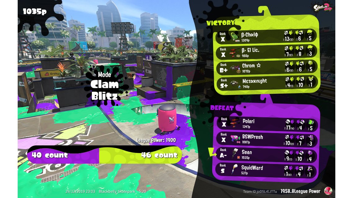 | Mode | Clam Blitz - League Battle (Twin) | |||||||||||||||||||||||||||||||||||||