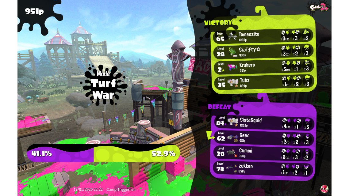 | Mode | Turf War - Regular Battle | |||||||||||||||||||||||||||||||||||||
