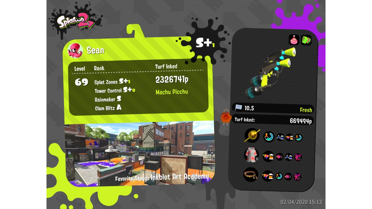 |  Kensa Splattershot Jr. | ★4 | S+ | 777 | 9 (5) / 2 | 4 / 1 | 4.00 80.00% | ||