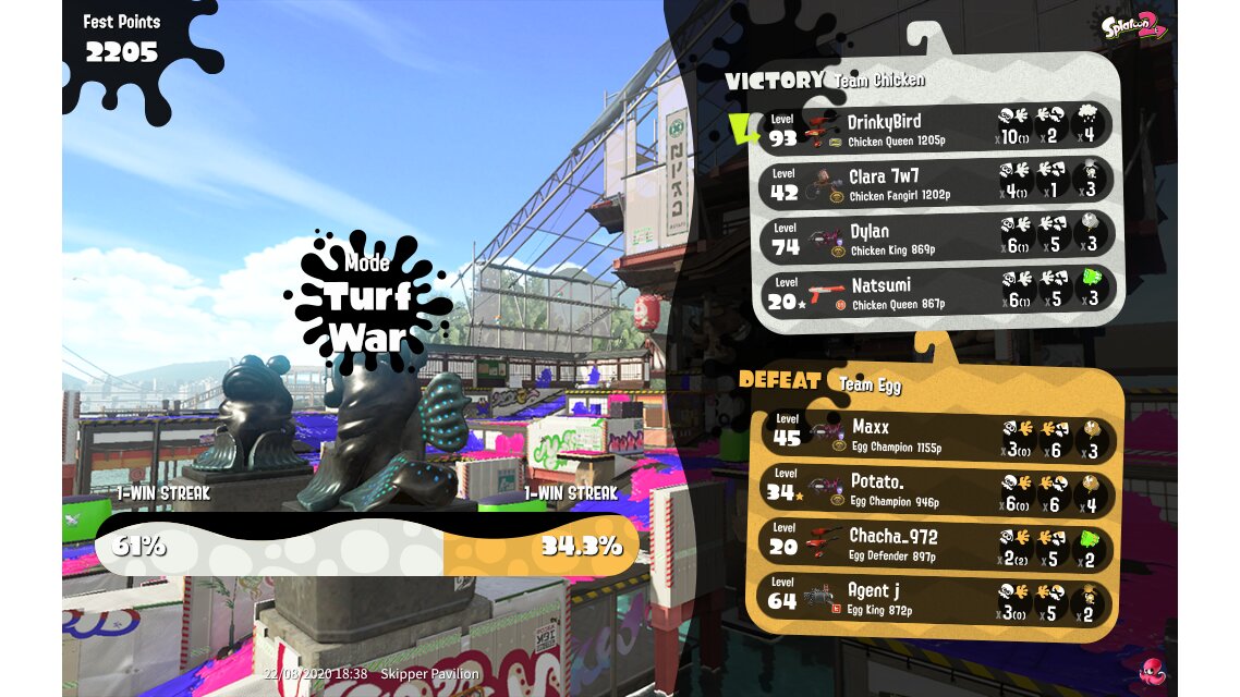 | Splatfest Title | Chicken Queen → Chicken Queen | |||||||||||||||||||||||||||||||||||||