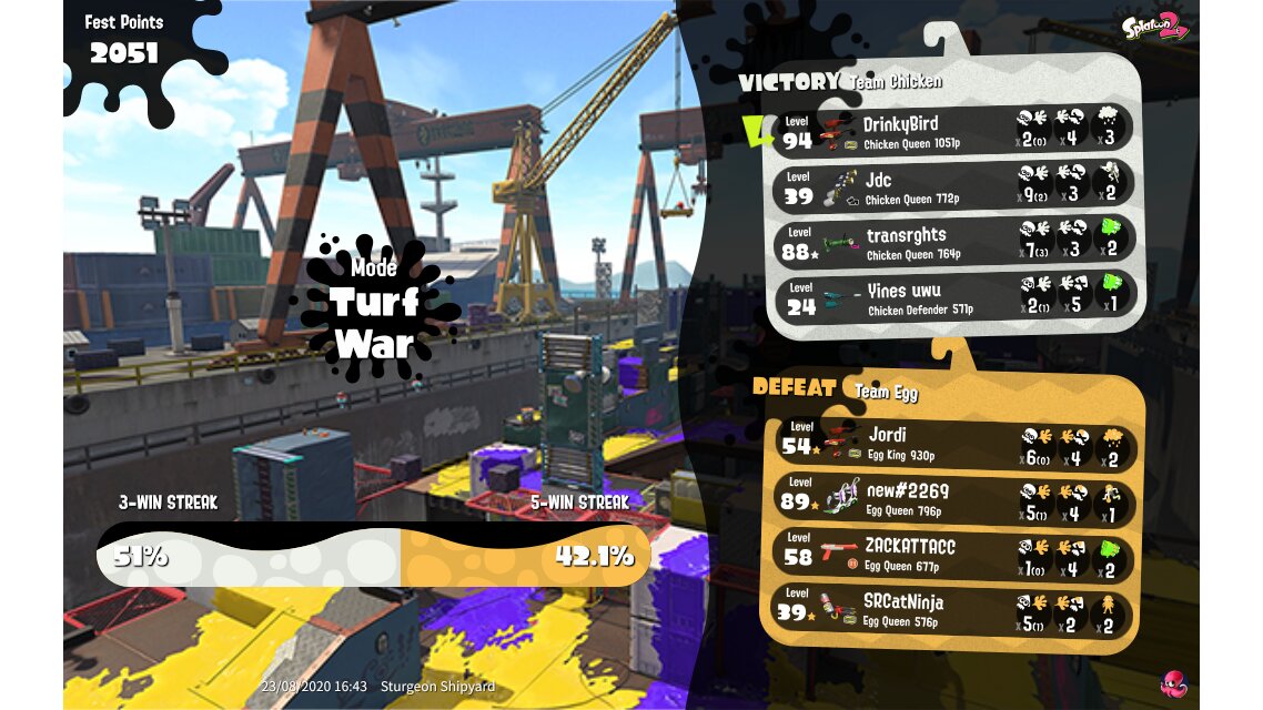 | Splatfest Title | Chicken Queen → Chicken Queen | |||||||||||||||||||||||||||||||||||||
