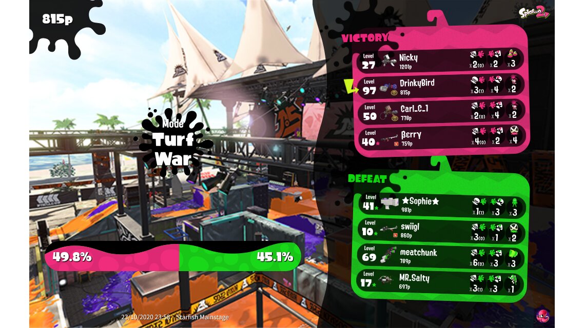| Mode | Turf War - Regular Battle | ||||||||||||||||||||||||||||||||||