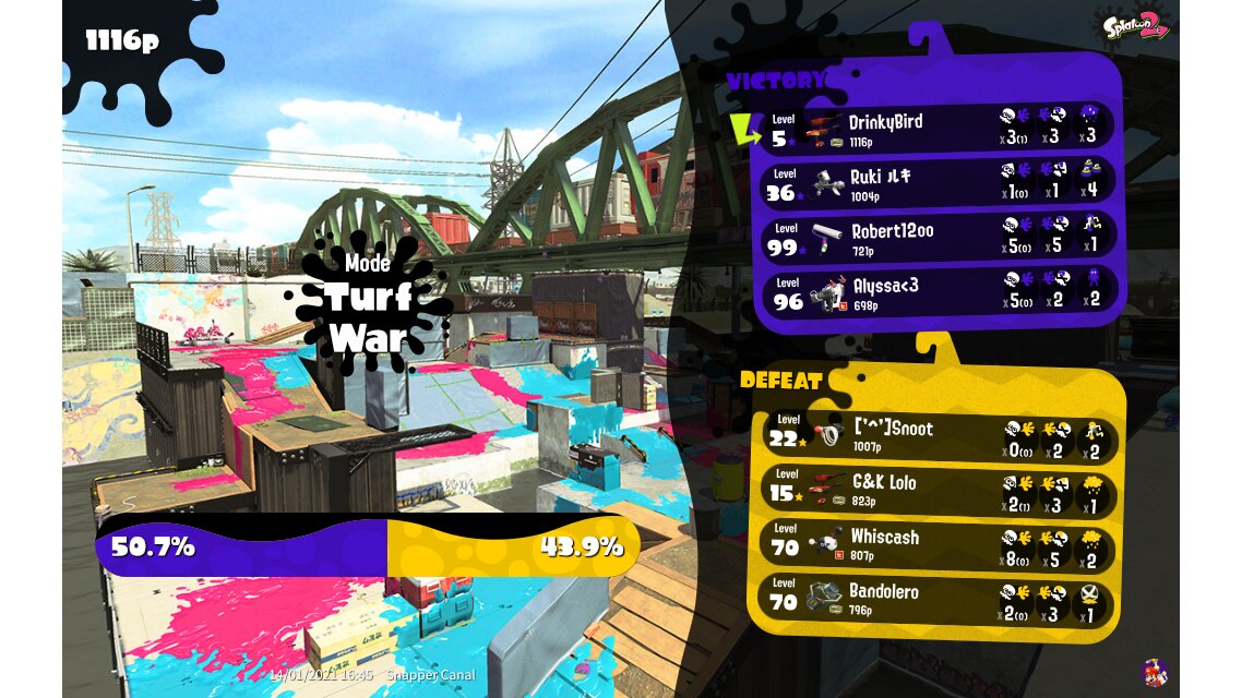 | Mode | Turf War - Regular Battle | |||||||||||||||||||||||||||||||||||||