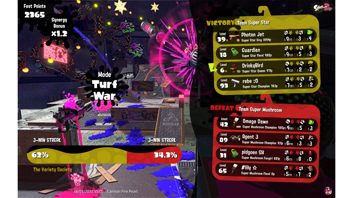 | Mode | Turf War - Splatfest (Normal) | |||||||||||||||||||||||||||||||||||||