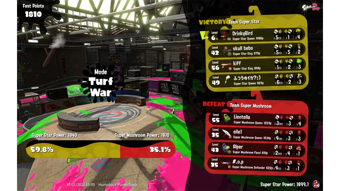 | Mode | Turf War - Splatfest (Pro) | |||||||||||||||||||||||||||||||||||||