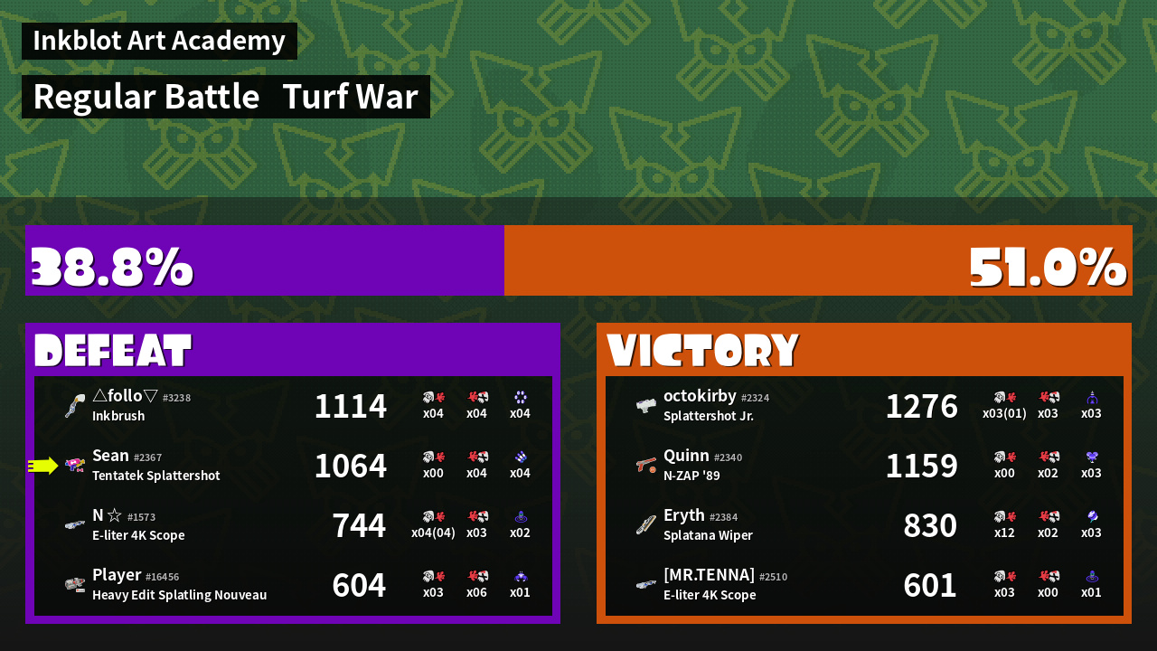 | Mode | Turf War - Regular Battle | ||